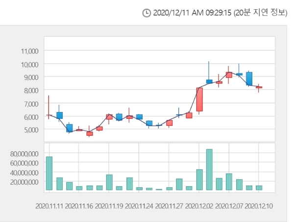 이미지 확대보기11일 한국거래소에 따르면 우리바이오 주가는 이날 오전 9시19분 현재 전거래일 대비 0.61% 내린 8180원에 거래되고 있다.