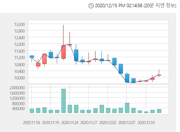하루만에 오름세로 가격제한폭까지 올랐다.