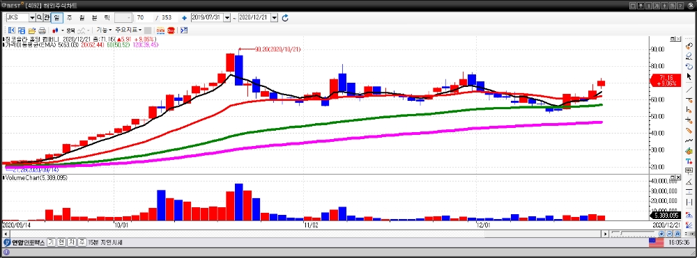 태양광 주가 급등은 조 바이든 대통령 당선인이 내건 친환경 인프라 구축 공약으로 주목을 받은 데다 의회도 투자세금 공제 확대 거론하며 급등세를 연출한 것으로 풀이된다.