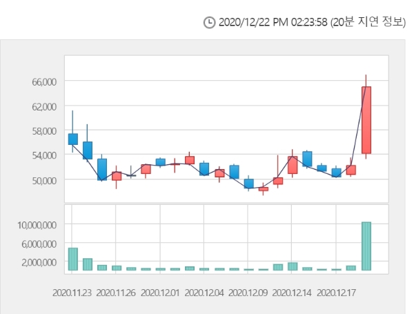 이미지 확대보기22일 한국거래소에 따르면 유가증권시장에서 대웅 주가는 이날 오후 2시 현재 전거래일 대비18.72% 오른 7만9900원에 거래되고 있다. 거래재개 이후 다시 오름세다.