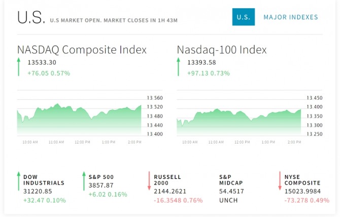 미국 뉴욕증시 나스닥 다우지수 실시간 시세