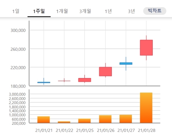사흘연속 상한가다.