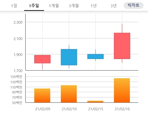 2거래일째 오름세로 가격제한폭까지 오른 상한가다.