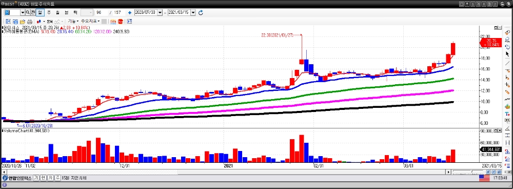 한편 경기회복 대표 수혜주로 꼽히는 항공주와 크루즈 관련주도 상대적으로 큰 폭으로 치솟았았다.