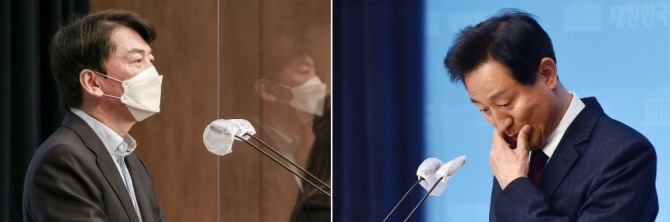 이미지 확대보기오세훈 국민의힘 서울시장 보궐선거 후보(사진 우측)가 안철수 국민의당 후보(사진 좌측)를 꺾고 야권 단일 후보로 선출되면서 주식시장에도 희비가 엇갈렸다.