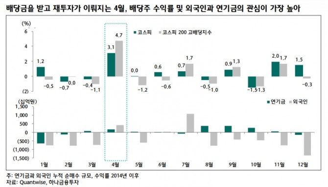 이미지 확대보기하나금융투자는 31일 횡보장을 우려하는 투자자들이 배당주를 대안으로 고려하기 있다며, '이쯤 되면 궁금해지는 배당주'라는 보고서를 내놨다.