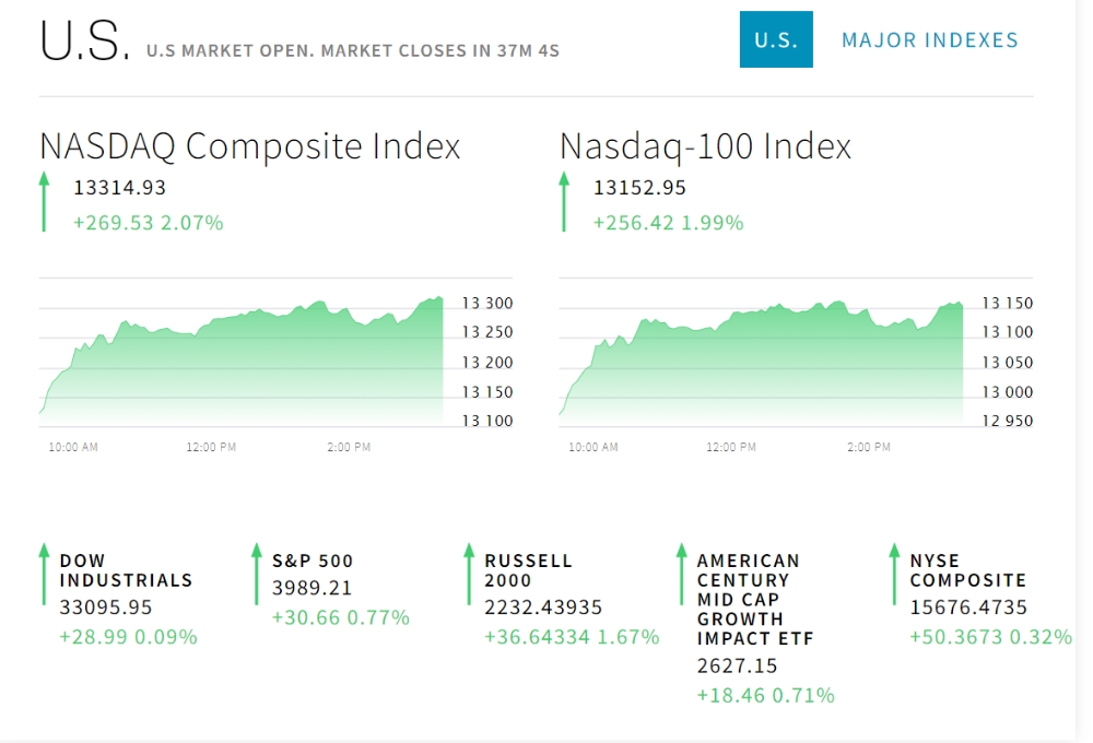 바이든 부양책 발표 이후 미국 뉴욕증시 나스닥 다우지수 실시간시세 이미지 확대보기