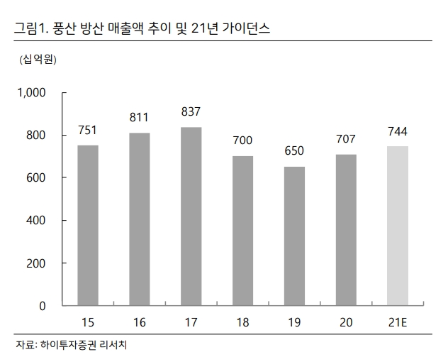 하이투자증권은 풍산의 올해 1분기 예상 실적인 연결 영업이익 420억원은 시장 기대치382억원을 상회할 것으로 전망했다.