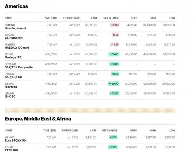 미국 뉴욕증시 나스닥 다우지수 주가지수 선물 시세