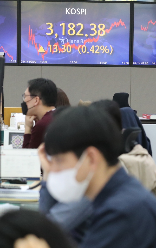 이미지 확대보기이날 한국거래소에 따르면 코스피는 전날 대비 0.42%(13.30포인트) 오른 3182.38에 거래를 마쳤다. 지수는 전장보다 0.87포인트(0.03%) 오른 3169.95에 시작해 보합권에서 등락하다 오후 들어 상승폭이 소폭 확대됐다.
