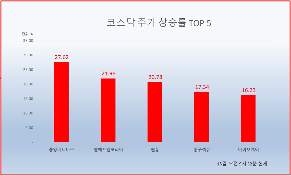 ■ 코스닥 주가 상승률 상위 종목 (15일 9시 32분 기준)