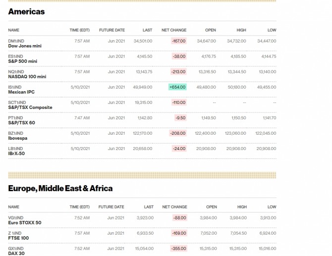 이미지 확대보기12일 뉴욕증시에 따르면 시카고 선물거래소에서 나스닥과 다우에 연동된 주가 지수 선물 시세가 일제히 하락하고 있다.<시세표 참조>