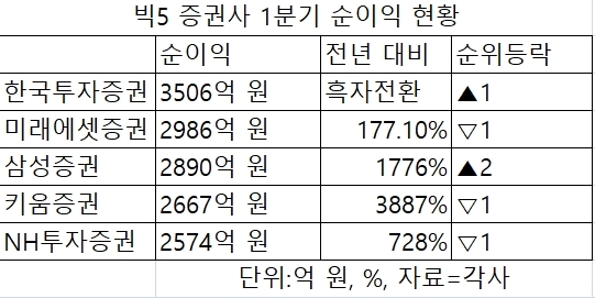 증권업계는 2분기에 빅5의 순위가 다시 달라질 것이라고 보고 있다.