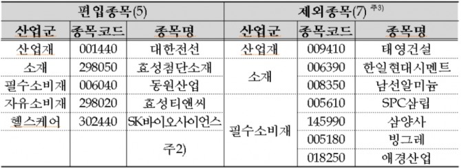 심의결과 KOSPI200은 7종목이 교체될 예정이다. 5종목이 새로 편입되고, 7종목이 제외된다.