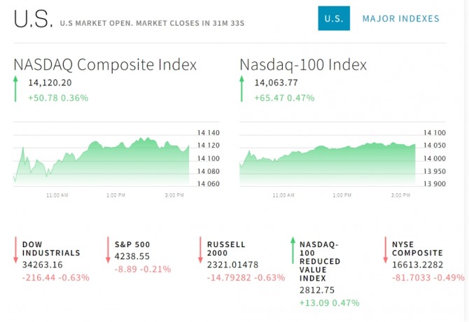 이미지 확대보기15일 뉴욕증시에 따르면 연방공개시장위원회 즉 FOMC의 테이퍼링 신호로 혼조 출발했다. 뉴욕증권거래소(NYSE)에서 다우존스30산업평균지수는 하락 출발후 그 낙폭을 더 키웠다. 스탠더드앤드푸어스(S&P)500지수는 소폭 상승한후 떨어졌다. 기술주 중심의 나스닥지수는 올랐다. S&P500지수는 한때 사상 최고치를 기록했다. 17일 새벽 연방준비제도(Fed)의 FOMC 정책 성명 발표를 앞두고 투자자들의 경계감도 커지고 있다. 연준이 채권 매입 프로그램을 단계적으로 축소하는 이른바 테이퍼링과 관련해 이르면 이번 주 힌트가 나올 가능성이 있다고 보고 있다. 연준 위원들의 금리 전망치를 담은 점도표도 주목대상이다. 이 점도표 상의 금리 전망치가 오른다면 조기 긴축 우려가 강화될 수 있다.