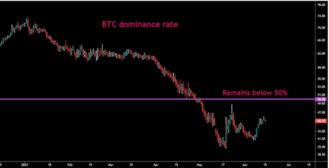일부 관찰자들은 머스크의 발언이 5월 35% 하락의 상당한 원인을 제공한 채굴의 부정적인 환경 영향에 대한 우려가 일시적이라는 것을 보여줬기 때문에, 향후 시장에 낙관적 영향을 미칠 것으로 생각한다. 또 다른 사람들은 엘살바도르가 비트코인을 합법적 통화로 채택하기로 한 결정을 응원하고 있다. 그러나 임박한 연방준비은행(Fed) 회의, 비트코인의 우세율, 기술 차트 등 거시적 요인과 암호 화폐 관련 요인은 상승 랠리에 걸림돌이 될 전망이다. 이러한 요소들을 자세히 살펴보기로 한다.