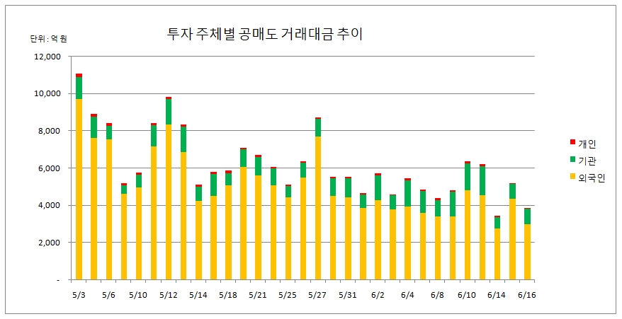 외국인 투자자들은 공매도 재개 시점인 지난달 3일 부터 이달 16일 까지 총 16조95억 원의 공매도 거래대금을 기록했다.