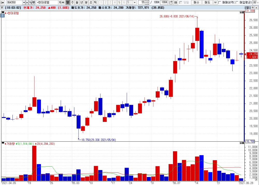 현대로템은 이날 주가상승으로 이달 들어 13.92% 상승 했으며, 시가총액은 2조6358억 원을 기록하고 있다.