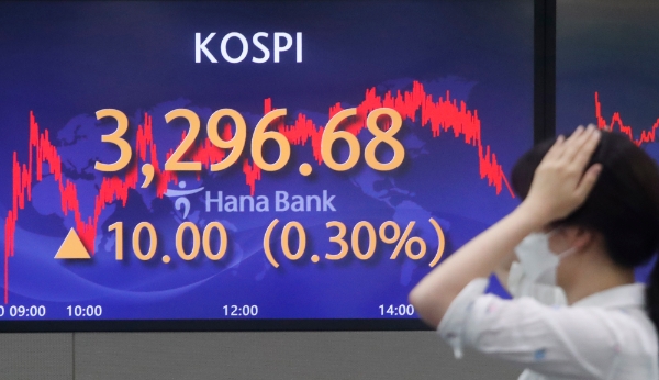이날 한국거래소에 따르면 코스피는 전날 대비 0.30%(10.00포인트) 오른 3296.68에 거래가 종료됐다.