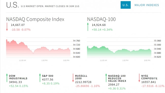 이미지 확대보기15일 뉴욕증시에 따르면 뉴욕증권거래소(NYSE)에서 다우존스30산업평균지수와 스탠더드앤드푸어스(S&P)500지수 그리고 기술주의 나스닥지수 모두 상승 기조로 출발했다.