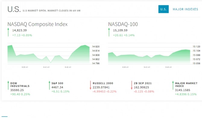 이미지 확대보기14일 뉴욕증시에 따르면 나스닥 다우지수는 기업들의 실적이 긍정적으로 나오는 가운데 상승 출발했다. 다우지수와 S&P500지수는 전날까지 3거래일 연속 사상 최고치를 경신했다. S&P500지수는 전날까지 올해 들어 47번째 사상 최고치를 다시 썼다. 미국 식품의약국(FDA)은 코로나19 고위험군을 상대로 백신 3차 접종을 허용했다. FDA는 보도자료를 통해 "긴급사용승인(EUA)을 수정해 장기 이식을 받았거나 면역 결핍과 비슷한 상황이라고 진단을 받는 고위험군에 화이자, 모더나 코로나19 백신 추가 접종을 허용한다"고 밝혔다. 앤서니 파우치 미국 국립알레르기·전염병연구소(NIAID) 소장은 어느 시점에는 결국 모든 사람이 부스터샷(추가 접종)을 맞아야 할 수 있다고 언급했으나 현재로선 면역력이 약화한 사람을 제외하고는 당장 부스터샷을 줄 필요는 없다고 말했다.