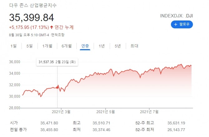 미국의 코로나19 입원환자는 10만 명을 넘어섰다. 코로나 팬데믹이 정점에 달했던 지난 겨울을 제외하고 가장 많은 것이다. 유럽연합(EU)은 코로나19 델타 변이의 급격한 확산에 따라 미국발 입국을 두 달 만에 다시 제한하기로 했다. 미국발 관광객의 입국 제한을 해제한 지 두 달 만에 원상복구 한 것이다. 그 바람에 여행주가 급락했다. 온라인 결제업체 페이팔의 주가는 회사가 미국 고객들을 대상으로 개별 주식을 거래할 수 있도록 하는 방법을 모색하고 있다는 소식에 3% 이상 올랐다. 가상화폐 결제허용 이후 또 호재가 이어졌다. 결제업체 어펌의 주가는 아마존과 파트너십 체결 소식에 40% 이상 올랐다. 로빈후드의 주가는 게리 겐슬러 증권거래위원회(SEC) 위원장이 고객들의 주식 거래 주문 정보(order flow)를 판매하는 관행을 금지할 수 있다고 한 발언이 전해지며 6% 이상 하락했다. 미국 시카고상품거래소(CME) 페드워치에 따르면 연방기금(FF) 금리 선물 시장은 내년 12월 25bp 기준금리 인상 가능성을 38.1%로 반영해 전장의 39.9%보다 낮아졌다. 50bp 금리 인상 가능성은 13.9%로 17%에서 하락했다. 뉴욕증시 시카고옵션거래소(CBOE)에서 변동성 지수(VIX)는 0.20포인트(1.22%) 하락한 16.19를 기록했다.
