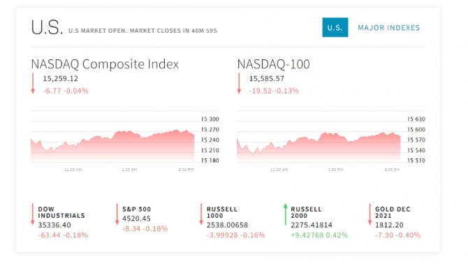 이미지 확대보기1일 뉴욕증시에 따르면 뉴욕증권거래소(NYSE)에서 다우존스30산업평균지수와 스탠더드앤드푸어스(S&P)500지수 그리고 기술주의 나스닥지수 모두 떨어지고 있다. 나스닥 지수는 고점 부담으로 차익매물이 쏟아지고 있다. 제롬 파월 연방준비제도(Fed) 의장이 연내 테이퍼링 가능성을 언급하면서도 고용 지표를 좀 더 지켜봐야 한다고 언급한 점 때문에 곧 발표되는 고용보고서에 관심을 집중하고 있다. 뉴욕증시 예상치는 72만 명 증가이다. 고용지표가 둔화하면 테이퍼링 시점이 늦춰질 수 있다는 전망이 강화된다. 지표가 예상보다 강하면 테이퍼링 시점도 빨라질 수 있다.