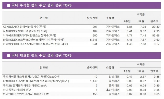 KB 게임테마 펀드 5.81%로 수익률 1위