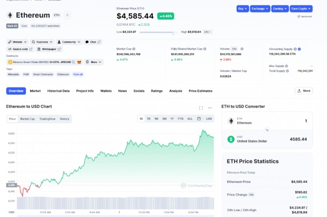 가상화폐 시장에서는 이더리움의 상승세가 이어지고 있다. 비트코인(Bitcoin, BTC)에 이어 두 번째 큰 암호화폐 이더리움(Ethereum, ETH)이 크게 오르고 있다. 대표적인 '스마트 컨트랙트'(조건부 자동계약 체결) 플랫폼 이더리움의 고유 자산 이더(ETH, 시총 2위)도 올랐다. 이더리움 시가총액은 글로벌 자산 데이터 플랫폼 애셋 대시(Asset Dash) 기준 세계 자산 순위 13위에 해당한다. 이는 알리바바(16위)와 비자(15위), JP모건(14위)를 넘어선 순위이다. 12위인 텐센트에 바짝 다가섰다.