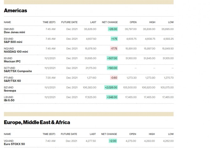 한국시간 이날 아침에 끝난 뉴욕증시는 연방공개시장위원회(FOMC) 정례회의 결과 발표를 하루 앞두고 최고치로 마감했다. 뉴욕증권거래소(NYSE)에서 다우존스30산업평균지수는 전장보다 138.79포인트(0.39%) 오른 36,052.63으로 마쳤다. 스탠더드앤드푸어스(S&P)500지수는 전장보다 16.98포인트(0.37%) 오른 4,630.65를, 기술주 중심의 나스닥지수는 전장보다 53.69포인트(0.34%) 상승한 15,649.60으로 거래를 마감했다. 미국 시카고상품거래소(CME) 그룹의 페드워치에 따르면 트레이더들은 연준이 내년 6월까지 금리를 인상할 가능성을 60% 이상으로 보고 있다. 골드만삭스 이코노미스트들도 연준의 첫 금리 인상 시기를 내년 7월로 예상하고 있다.