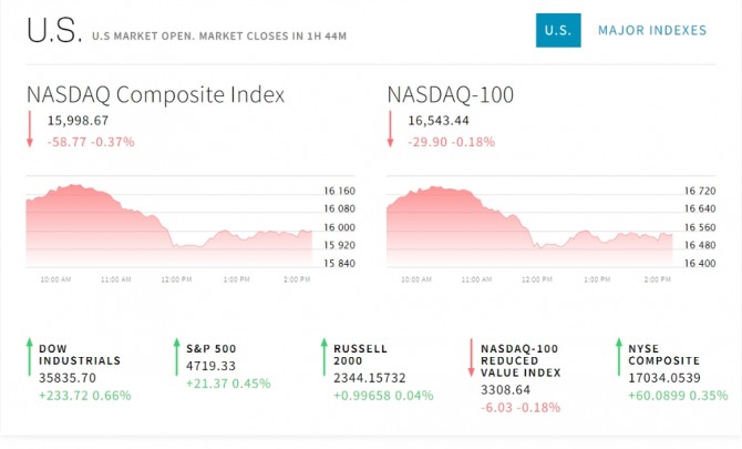 이날 뉴욕증시는 제롬 파월 연방준비제도(연준·Fed) 의장이 연준 의장으로 재지명됐다는 소식에 강세로 출발했다. 뉴욕증권거래소(NYSE)에서 다우존스 30산업평균지수와 스탠더드앤드푸어스(S&P)500지수 그리고 기술주 중심의 나스닥 지수 모두 올랐다. S&P500지수와 나스닥 지수는 장중 최고치를 경신했다. 그러나 나스닥 지수는 파월 재지명이후 무너졌다. 은행주들은 국채금리가 오름세를 보인 영향으로 상승했다. JP모건과 모건스탠리의 주가는 모두 2% 이상 올랐다. 테슬라 주가는 일론 머스크 최고경영자(CEO)가 내년 3월경에 자사의 고급 전기차인 모델S 플레이드를 중국에 출시할 수 있을 것이라고 언급하면서 4% 이상 올랐다. 모더나 주가도 폭등이다. 리비안 주가는 포드가 리비안과의 전기차 공동 계발 계획을 접었다는 소식에 5% 이상 하락했다.. 국제유가는 강세였다.
