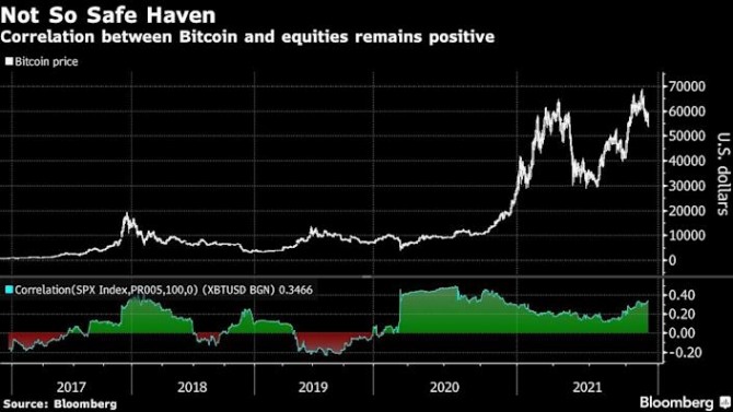 다른 비트코인 지지자들은 암호화폐가 2,100만 토큰의 제한된 공급을 지적하면서 인플레이션에 대한 헤지 수단으로 사용될 수 있다고 제안한다. 그 이야기에 따르면 변종 코로나 관련 뉴스가 세계 경제 회복이 탈선할 수 있다는 우려를 불러일으킨 날 코인 역시 떨어지는 것이 합리적일 것이다. 블룸버그 이코노믹스는 비트코인의 최근 수익 중 약 절반이 인플레이션 공포로 설명될 수 있고 나머지 절반은 시장의 활기와 모멘텀 거래에서 비롯되는 것으로 추정했다.