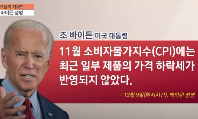 미국의 CPI는 올 하반기 들어 가파르게 급등하고 있다. 지난 5월 당시 연율로 5%에 진입한 후 9월 지표(5.4%)까지 5%를 유지하며 강보합세를 보였다. 이는 지난 11월 초 발표한 10월 지표(6.2%)에서 1%p(포인트) 가까이 급등했다. 국제유가와 천연가스 가격 등 에너지 가격이 높아진 여파다. 그러나 11월 말부터 국제유가는 일부 안정화하는 조짐을 보인 것이 CPI 집계 기간에 포함하지 않은 것으로 보인다. 이와 관련 조 바이든 미국 대통령 역시 9일 별도의 성명을 내고 해당 지점을 지적하며 금융시장과 시민들의 물가 불안감을 진정시키려 나름 노력했다. 바이든 대통령은 CPI 짐계이후 주간 에너지 가격이 하락했다"고 말했다. 그는 "11월 에너지 가격에 대한 정보는 지금의 현실을 반영하지 못하고 있다"면서 도매시장에서도 이미 에너지 가격 하락세가 시작됐다는 점을 언급하면서 "앞으로 몇 달 동안 미국인들에게 (에너지 가겨은) 더 낮은 가격으로 해석될 것"이라고 강조했다.