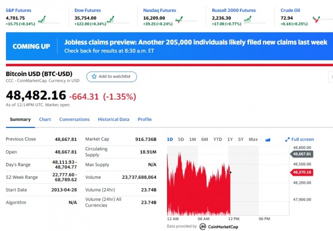 이미지 확대보기미국 FDA,가 화이자 알약 코로나 치료제를 긴급 승인했다는 소식이 나온 가운데 미국 뉴욕증시에서 다우 지수 선물이 또 오르고 있다. 사흘 연속 상승이다. 다우 지수선물과 나스닥 지수선물 모두 오르고 있다. 지수선물의 상승은 이어 열리는 뉴욕증시 정규장에서 나스닥과 다우지수에 영향을 주게 된다. 비트코인은 또 떨어지고 있다. 국채금리와 국제유가 환율 금값 그리고 비트코인등 암호화폐도 미국 FDA 화이자 알약 코로나 치료제를 긴급승인이 오미크론에 미칠 영향에 주목하고 있다.유럽지역에서 오미크론 봉쇄가 확산되는 것은 악재로 작용하고 있다.