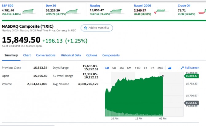 이미지 확대보기28일 뉴욕증시에 따르면 이 시각 현재 뉴욕증권거래소(NYSE)에서 다우존스30산업평균지수와 스탠더드앤드푸어스(S&P)500지수 그리고 기술주 중심의 나스닥 지수 모두 크게 오르고 있다. 특히 나스닥지수 상승폭이 크다. 이날 뉴욕증시에는 신종 코로나바이러스 감염증(코로나19) 오미크론 영향 속에서 연말 보복 쇼핑이 크게 늘었다는 소식이 이슈였다, S&P500지수는 또 최고치 신기록을 세우고 있다. 오미크론 때문에 여행은 줄었으나 대신 보복 쇼핑이 늘면서 산타 랠리에 대한 기대가 높아지고 있다. 연말 쇼핑 시즌 매출이 17년 만에 가장 높은 증가율을 기록했다는 보도가 뉴욕증시에 호재가 됐다..