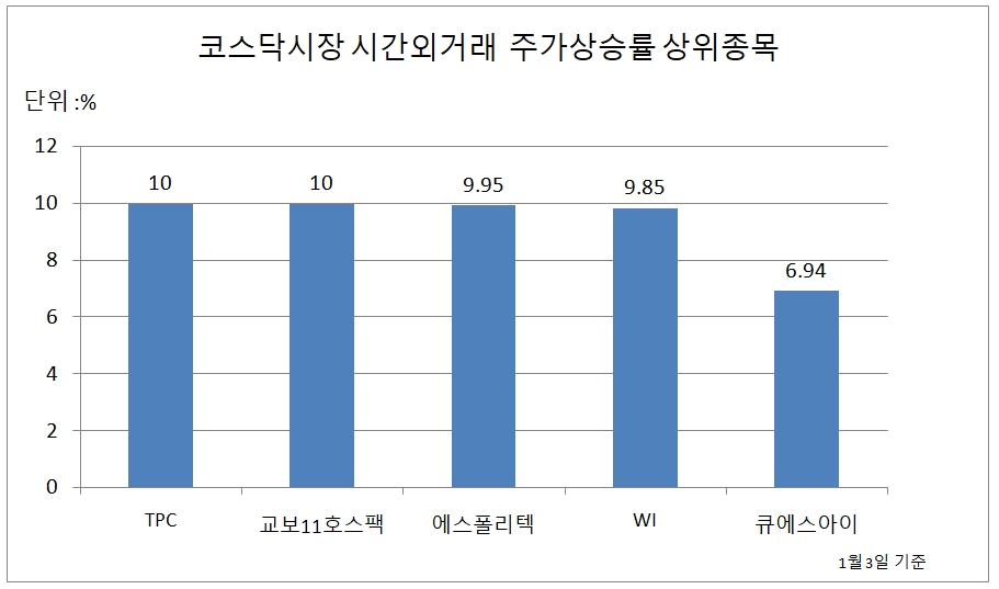 ■ 3일 코스닥시장 시간외거래 주가상승률 TOP 10