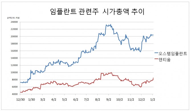 이미지 확대보기오스템임플란트가 횡령사건 관련으로 매매거래가 정지된 가운데 치과용 의료기기 업체 덴티움 주가가 이틀 연속 강하게 상승해 투자자들의 눈길을 끌고 있다.