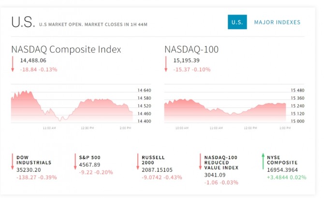 이미지 확대보기20일 뉴욕증시에 따르면 뉴욕증권거래소(NYSE)에서 다우존스30산업평균지수와 스탠더드앤드푸어스(S&P)500지수 그리고 기술주 중심의 나스닥 지수는 실적 호전 기대를 안고 상승 출발했으나 금리인상과 양적긴축의 우려가 다시 제기되면서 이 시각 하락 반전했다 <뉴욕증시 실시간 시세표 첨부> 은행 등 금융사들의 실적은 호전됐다. 모건스탠리와 뱅크오브아메리카 등이 어닝 서프라이즈를 냈다. 프락터 앤드 갬블(P&G)도 선방했다.