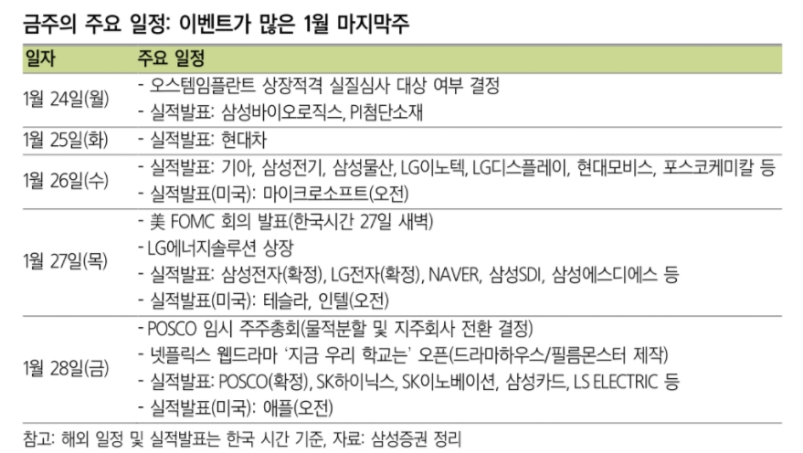 ■ 삼성증권, 1월 네째 주 추천종목과 추천사유