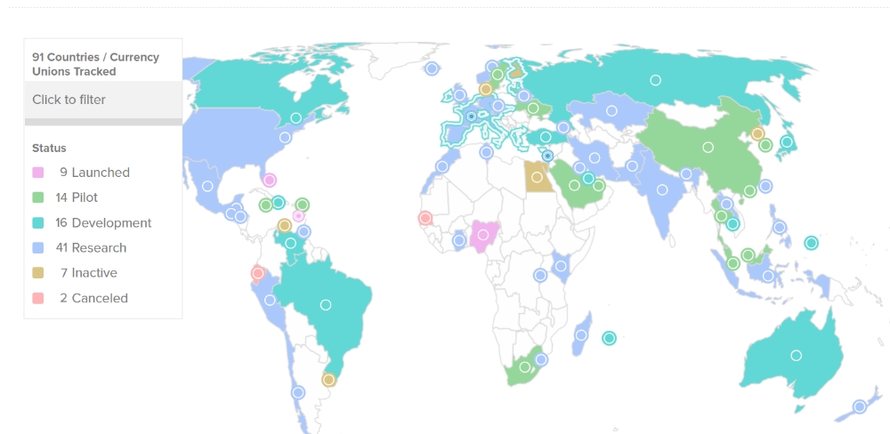 91개국 주권 디지털 통화 개발 중, 14개국만 파일럿 단계 도달
