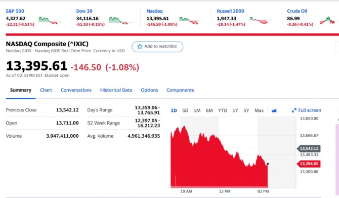이런 가운데 미국 CNBC는 다우와 S&P500은 팬데믹(전염병의 세계적 대유행)의 충격이 컸던 2020년 3월 이후 최악의 월간 하락률을 기록할 가능성이 있다고 미 CNBC 방송이 이날 보도했다. 나스닥의 하락률은 세계 금융위기 당시인 2008년 10월 이후 최대가 될 수도 있다. 나스닥은 이미 지난 19일 고점보다 10% 넘게 떨어져 조정장에 진입했다.