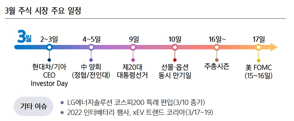이제 투자자들의 시선은 3월 FOMC로 향할 시점이며, 이번 시장 조정의 근본 원인은 美 연준 금리 인상과 자산 축소 시점에 대한 불확실성이기 때문이라고 진단했다.