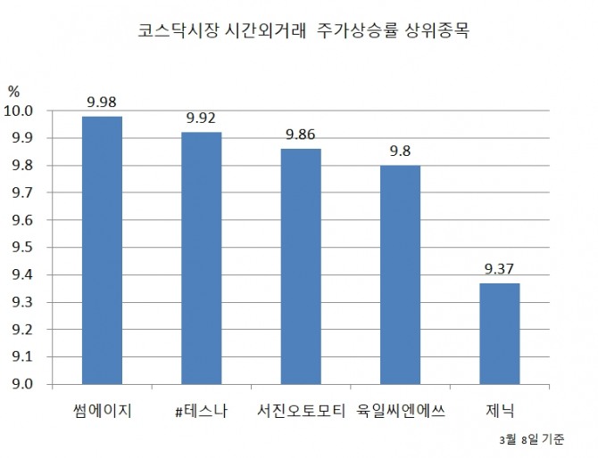 다음은 지난 8일 코스닥 시장 시간외거래 상승률 상위 종목이다.