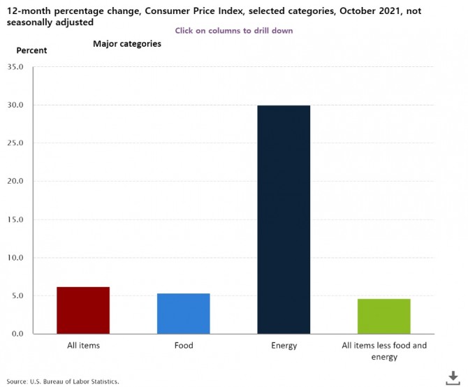 미국 노동부는 CPI 물가 급등 요인으로 “휘발유 값과 중고차 가격이 크게 오른 탓"으로 분석했다. 미국 소비자물가 CPI 상승률은 2021년 5월 5%를 넘어섰다. 10월에는 6%를 돌파한데 이어 12월에 7%까지 높아졌다. 미국 연방준비제도의 목표치 2%를 크게 넘어선 상황이다.