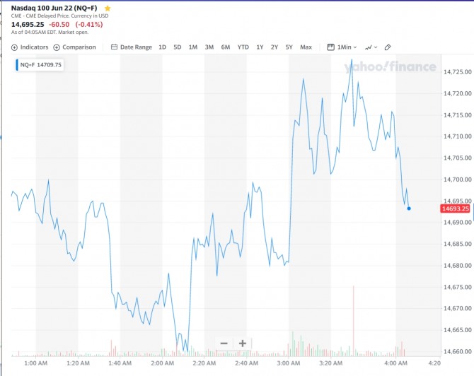 S&P 500 선물도 0.3%(13.50포인트) 하락한 4523.00에 거래되고 있고, 나스닥 선물은 0.41%(60.50포인트) 하락한 1만4695.25에 거래되고 있다.