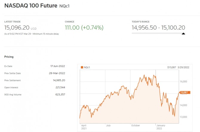 러시아와 우크라이나 간의 평화 협상과 관련하여 러시아가 우크라이나에 더이상 '탈나치화(denazified)'를 요구하지 않을 것이라는 보도가 나왔다. 파이낸셜 타임스는 러시아가 더이상 휴전 협상에서 우크라이나의 탈나치화를 요구하지 않을 것이라고 보도했다. 테슬라의 주가는 주식 분할을 추진하고 있다는 소식에 8% 이상 올랐다. 시카고상품거래소(CME) 페드워치에 따르면 연방기금(FF) 금리 선물 시장에서 연준이 5월 회의에서 기준금리를 50bp 인상할 가능성은 71.1%로 나타났다. 6월 회의에서 50bp 이상 금리 인상 가능성도 80%를 넘어섰다. 시카고옵션거래소(CBOE) 변동성 지수(VIX)는 1.18포인트(5.67%) 하락한 19.63을 기록했다