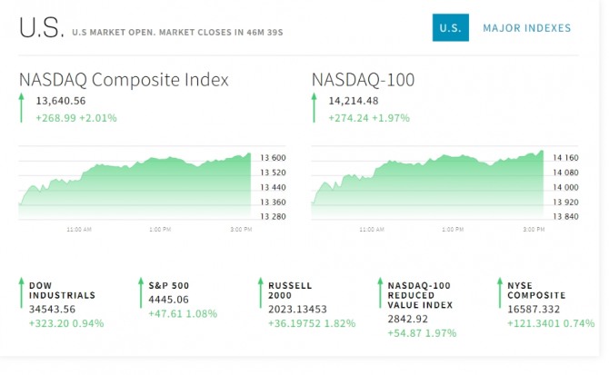 이미지 확대보기14일 뉴욕증권거래소(NYSE)에 따르면 다우존스30산업평균지수와 스탠더드앤드푸어스(S&P)500지수 그리고 기술주 중심의 나스닥 지수는 모두 오르고 있다, 특히 나스닥 상승률이 높다. 뉴욕증시 투자자들은 본격적으로 시작된 1분기 실적 발표와 생산자물가지수(PPI) 지표 등을 주목했다. 올 1분기에는 러시아의 우크라이나 침공으로 국제유가가 급등하고 성장률 둔화와 인플레이션 상승에 대한 우려가 커졌던 때다.