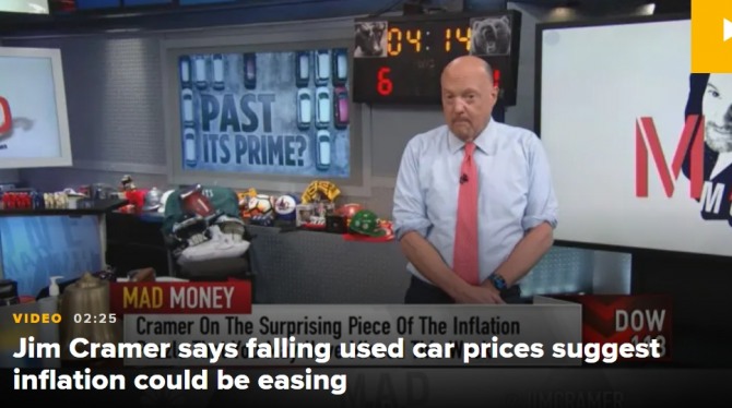 이미지 확대보기그는 CNBC의 매드머니 방송에서 "모든 사람들이 8.5%의 소비자 물가지수에 대해 불안해하고 있을 때 중고차와 트럭 가격이 전월보다 3.8% 하락했다"고 말했다.