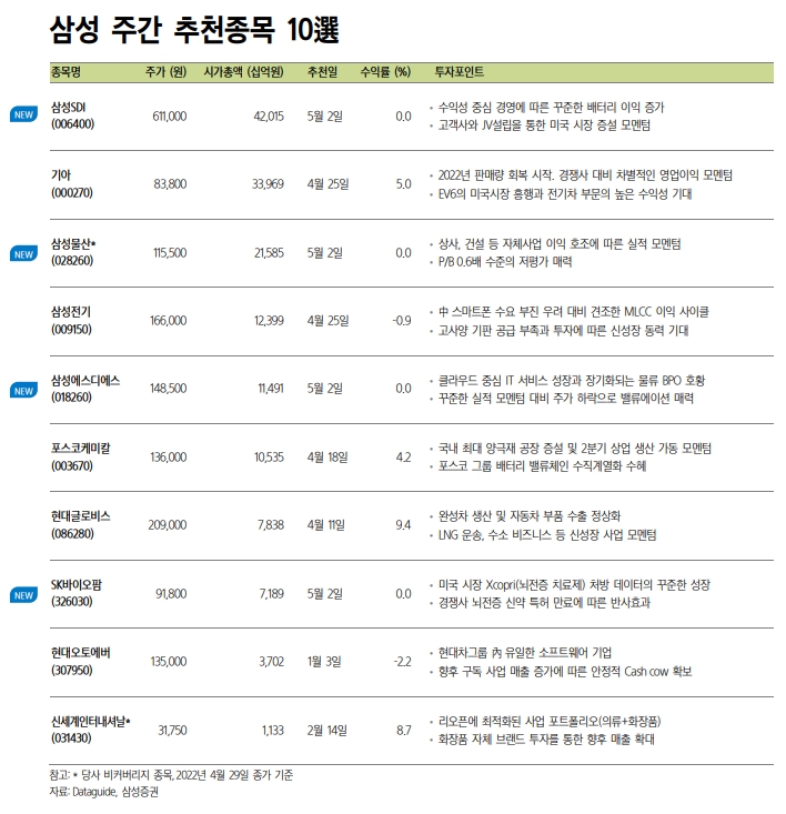 [표] 삼성증권 주간 추천종목 10선