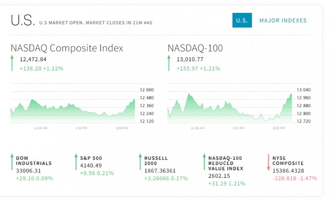 이미지 확대보기3일 뉴욕증시에 따르면 뉴욕증권거래소(NYSE)에서 다우존스30산업평균지수와 스탠더드앤드푸어스(S&P)500지수 그리고 기술주 중심의 나스닥 지수는 상승 출발했다. 장중한때 휘청 밀렸으니 나스닥 지수는 막판에 살아나고 있다.